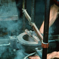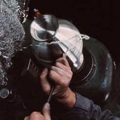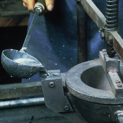 Zinn hat eine Eigenschaft, die vielen Menschen unserer Zeit fehlt: Zinn braucht Zeit und in hohem Maß Geduld. Die muss ein Zinngießer mitbringen. Langsam und stetig muss er die Form füllen, vorsichtig und mit viel Ausdauer kühlen, um einen festen, gebrauchstüchtigen Guss zu erzeugen. Zinn widersetzt sich modernen schnellen Verfahren, mit denen nur kurzzeitige Effekte erzielt werden können. Darum muss der Zinngießer die alten handwerklichen Methoden beherrschen, bei denen die Hand das wichtigste Werkzeug bleibt.